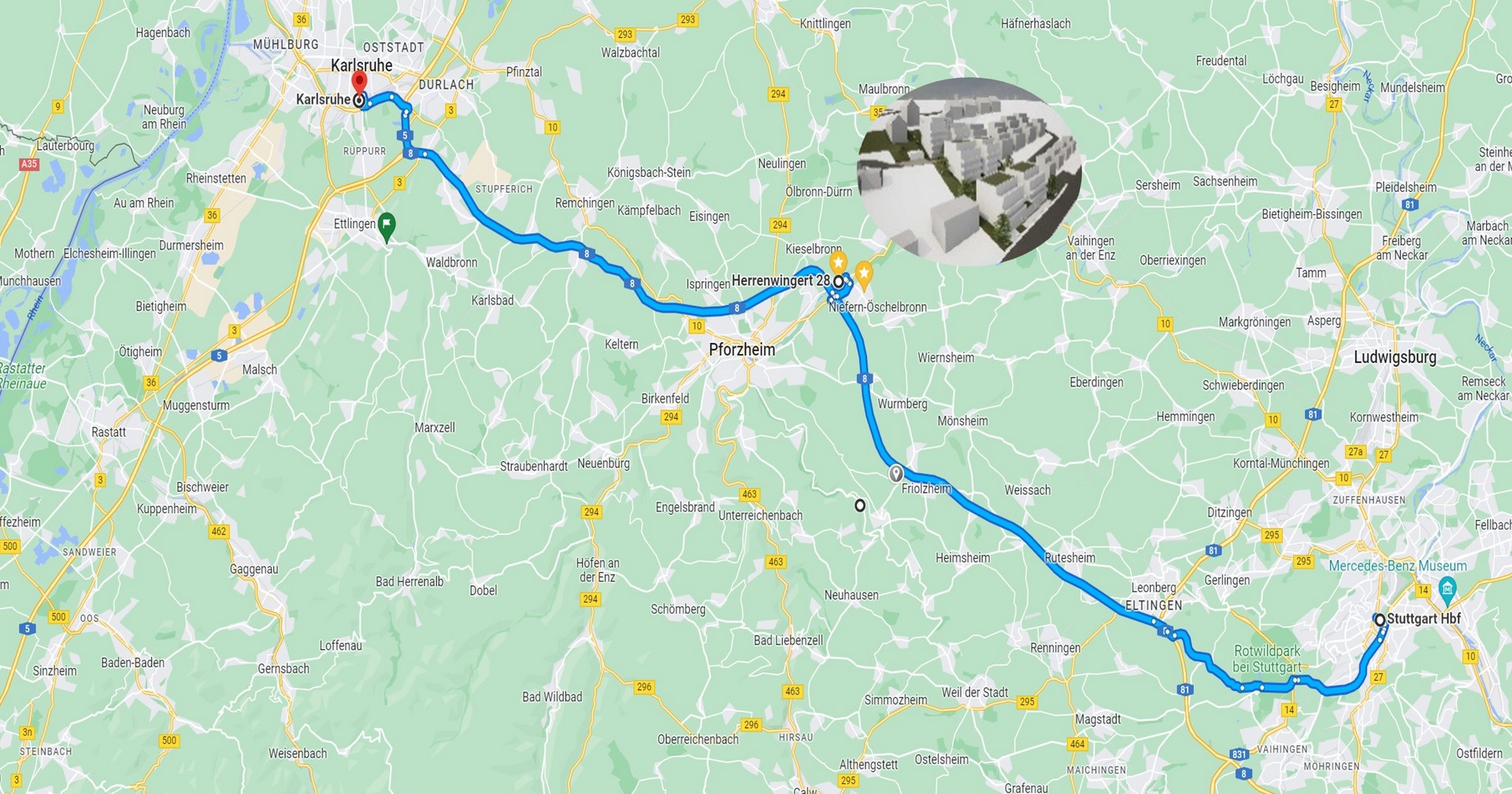 liegt das Projekt perfekt in der Mitte der Wirtschafts- und Kulturmetropolen Stuttgart und Karlsruhe. Niefern-Öschelbronn ist Teil des ländlichen Verdichtungsraums der Europäischen Metropolregion Stuttgart und bietet direkten Zugang zum Oberrheingebiet mit der Region Universitätsstadt Karlsruhe und zum Europäisches Städtenetz, Karlsruhe, Baden-Baden, Strasbourg