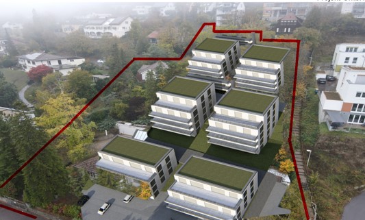 einer Grundfläche von 4.766 m², die in ökologischer Nachverdichtung 54